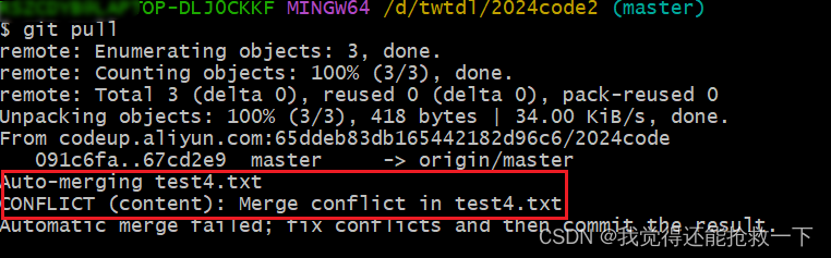 远程分支也是分支,所以合并时冲突的解决方式也和解决本地分支冲突相同
