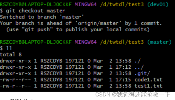 [-f]是强制覆盖:本地的代码和远端的代码修改的是同一个东西,会有冲突不给你退,-f的意思是就以我这个为准强制覆盖