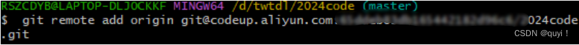 - 指令: git remote add origin(一般都用这个名字) + (git@codeup.aliyun.com:xxxxxxxxxxxxx.git)