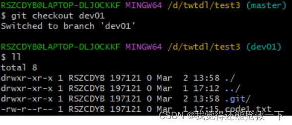 我们还可以直接切换到一个不存在的分支(创建并切换)