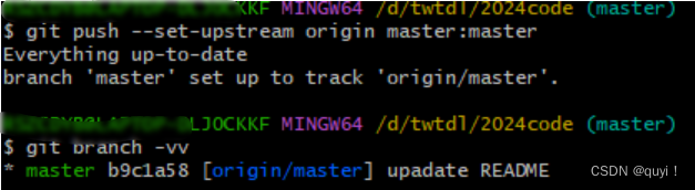 如果当前分支已经和远端分支关联,则可以省略分支名和远端名
