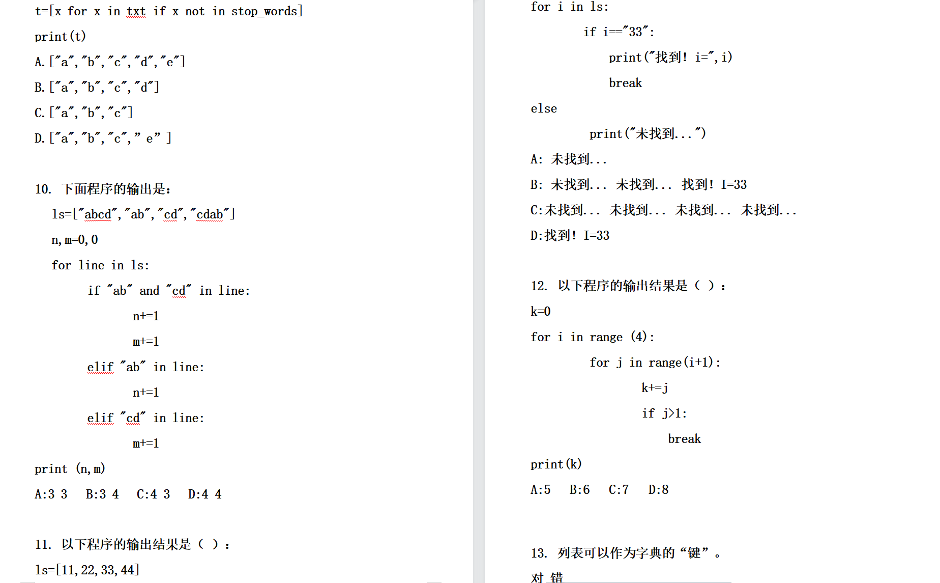 DBDAB,DDCDC,DA 错 ,错,对,对,None,(【1,3】,【2】)