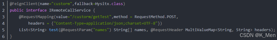 - fallback: 定义容错的处理类,当调用远程接口失败或超时时,会调用对应接口的容错逻辑,fallback指定的类必须实现@FeignClient标记的接口
