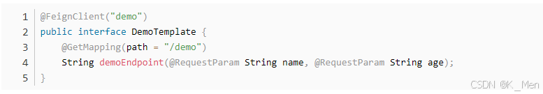 - OpenFeign的 @FeignClient可以解析Spring MVC的@RequestMapping注解下的接口,并通过动态代理方式产生实现类,实现类中做负载均衡调用服务。