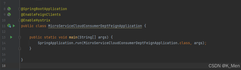 2.1.5 在主启动类上添加 @EnableFeignClients 注解开启 OpenFeign 功能,代码如下。