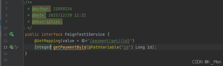 - 接口中定义的每个方法都与服务提供者(即 micro-service-cloud-provider-dept-8001 等)中 Controller 定义的服务方法对应。