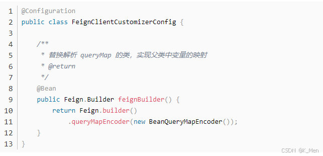 知道了原因,解决方案就很简单了,跟换为 @QueryMap 的 QueryMapEncoder 为推荐的 BeanQueryMapEncoder 就行了。