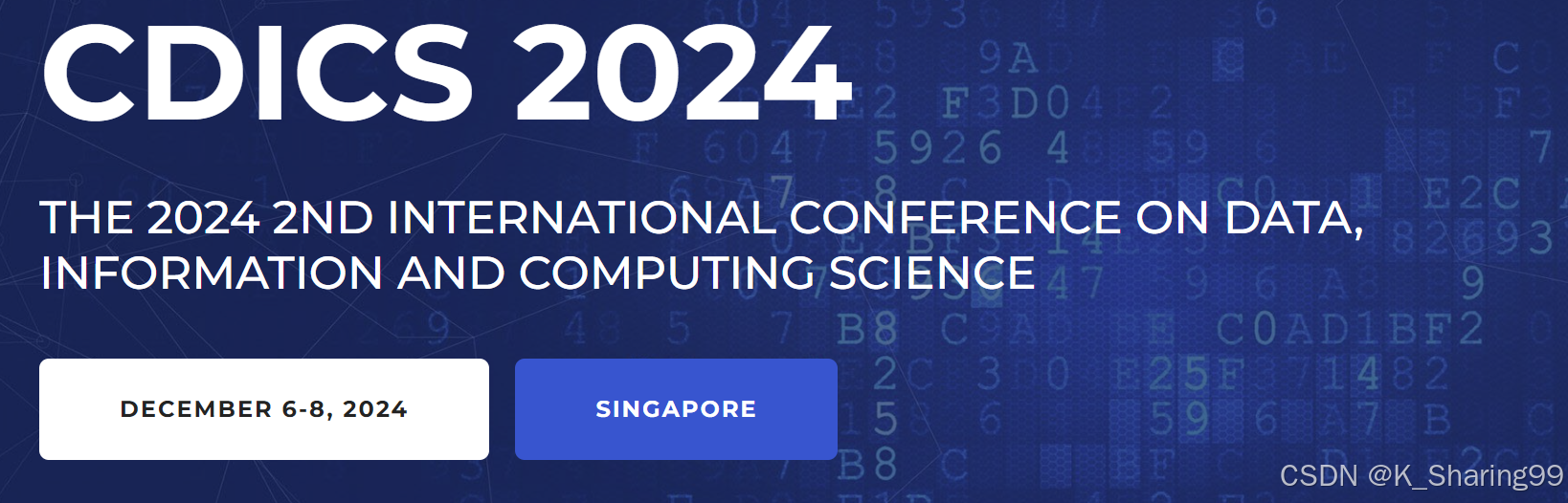 第二届数据、信息和计算科学国际会议(CDICS 2024)将聚焦“数据、信息和计算科学”,12月6-8日在新加坡召开,征稿主题广泛,欢迎投稿、参会交流。