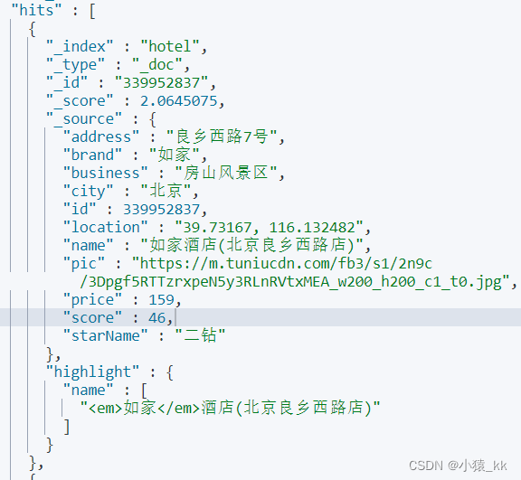 在查询结果中,高亮结果在hits中的highlight中,需要额外解析