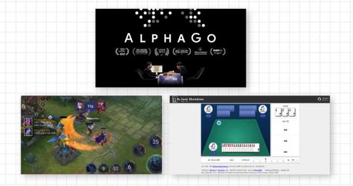 第三张图开发的项目是基于强化学习的卡牌游戏,卡牌游戏主要是用蒙特卡洛树搜索(MonteCarlo Tree Search)的办法,结合强化学习自博弈(Self-play)去训练卡牌,让它能够像人一样做决策,甚至超过人的决策,去战胜人类玩家。