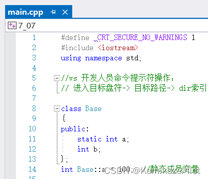 - static修饰的变量存储在静态区,这里不占用空间,如果将其修改为非静态成员,那么上面的显示就会变为八字节,a变量,b变量