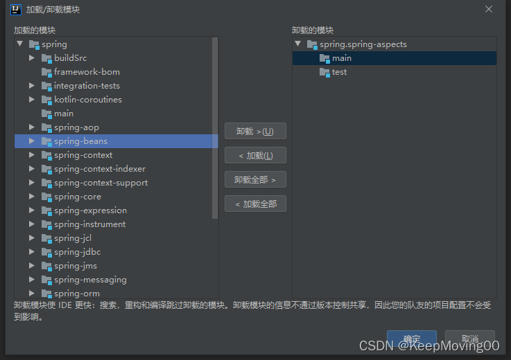 选中spring-aspects,右键Load/Unlaod modules,选择卸载,重新build