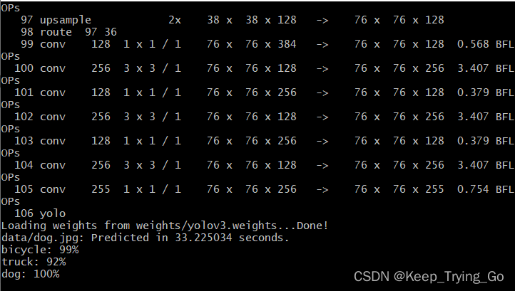 ./darknet detect cfg/yolov3.cfg yolov3.weights data/dog.jpg