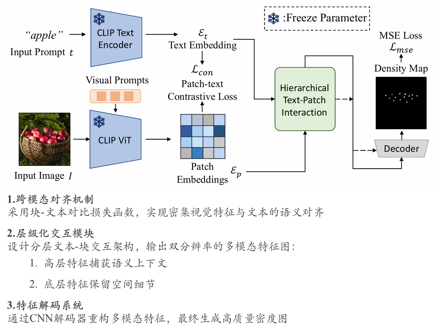 针对上述问题,基于对比语言-图像预训练模型(CLIP)提出CLIP-Count框架: