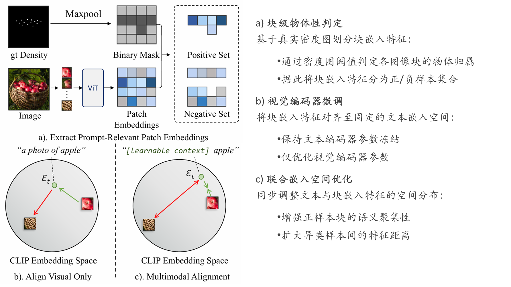 通过引入块- 文本对比损失函数,实现文本嵌入与密集视觉特征的对齐,指导模型学习适用于密集预测的块级视觉表征。