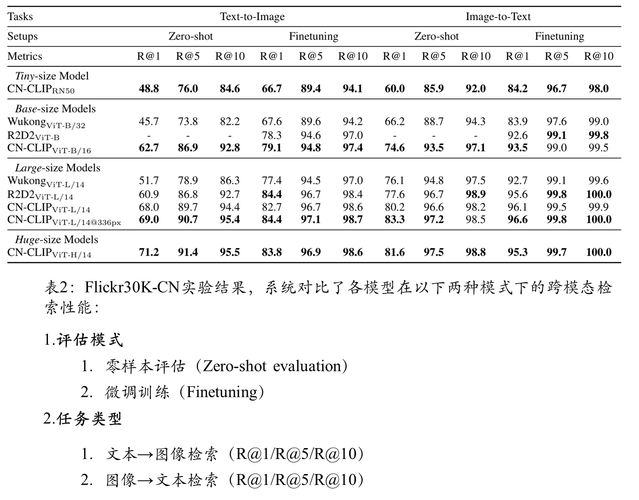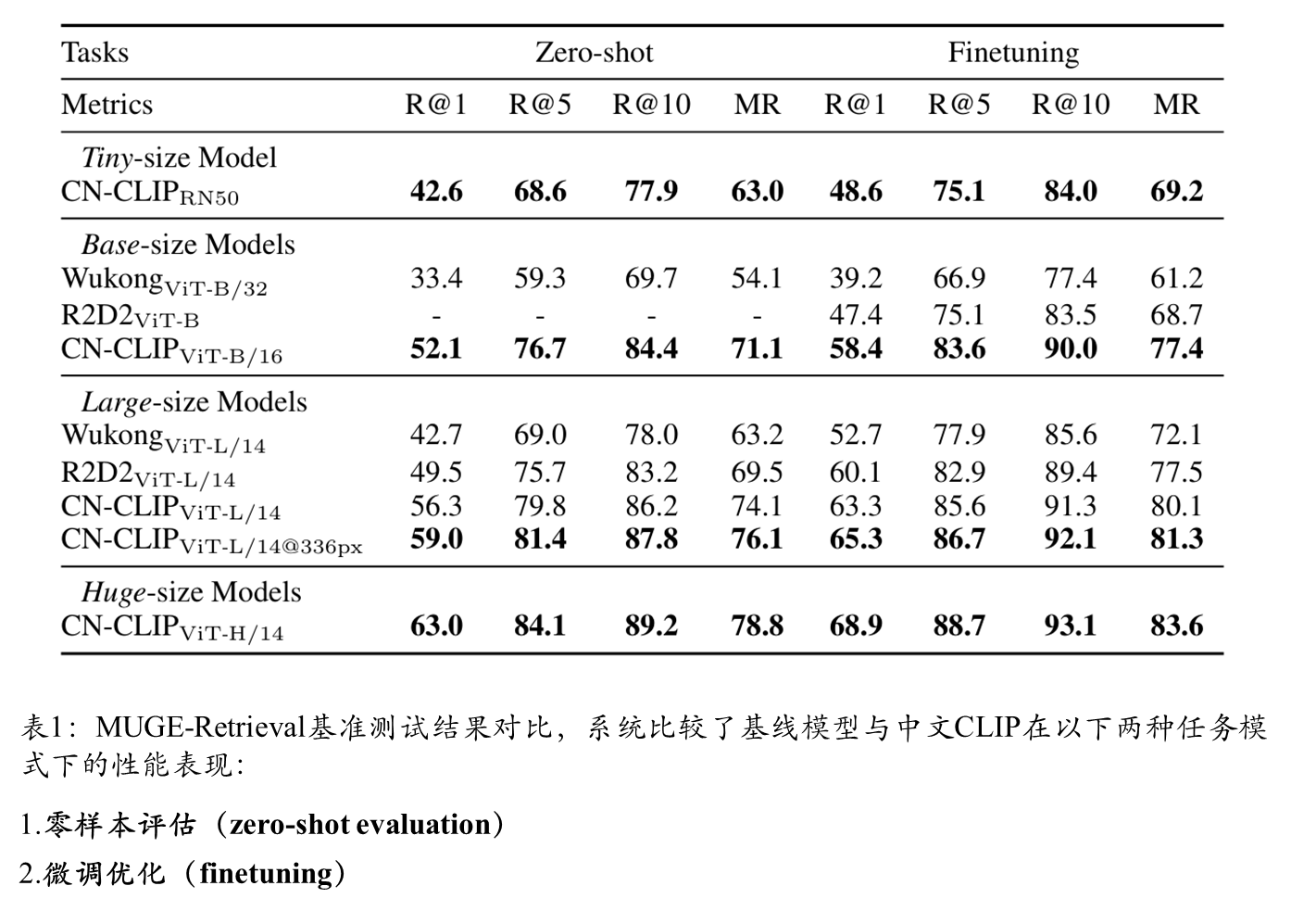 在MUGE、Flickr30K-CN和COCO-CN三个中文跨模态检索数据集上的实验表明: