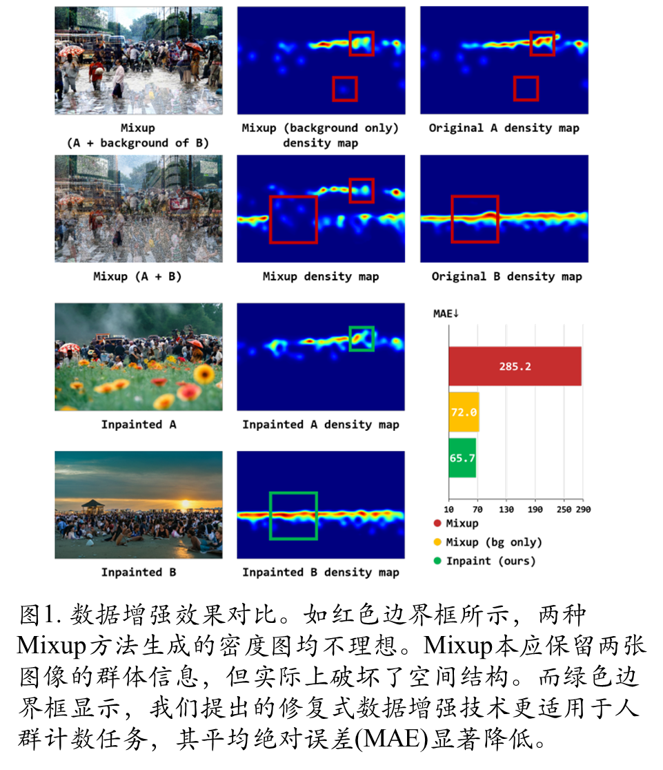 - 提出专为人群计数设计的背景修复增强技术,实现数据多样性与前景完整性的统一;
