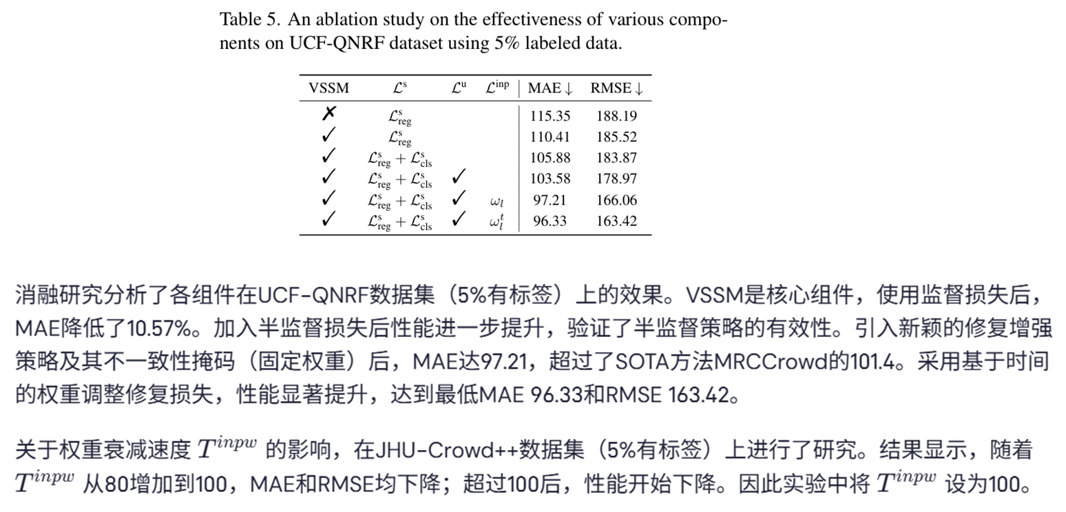 - 在四项基准测试中全面超越现有方法,其中JHU-Crowd数据集在5%标注量下误差降低12.4%,并在跨数据集场景中展现出超越全监督方法的泛化性能