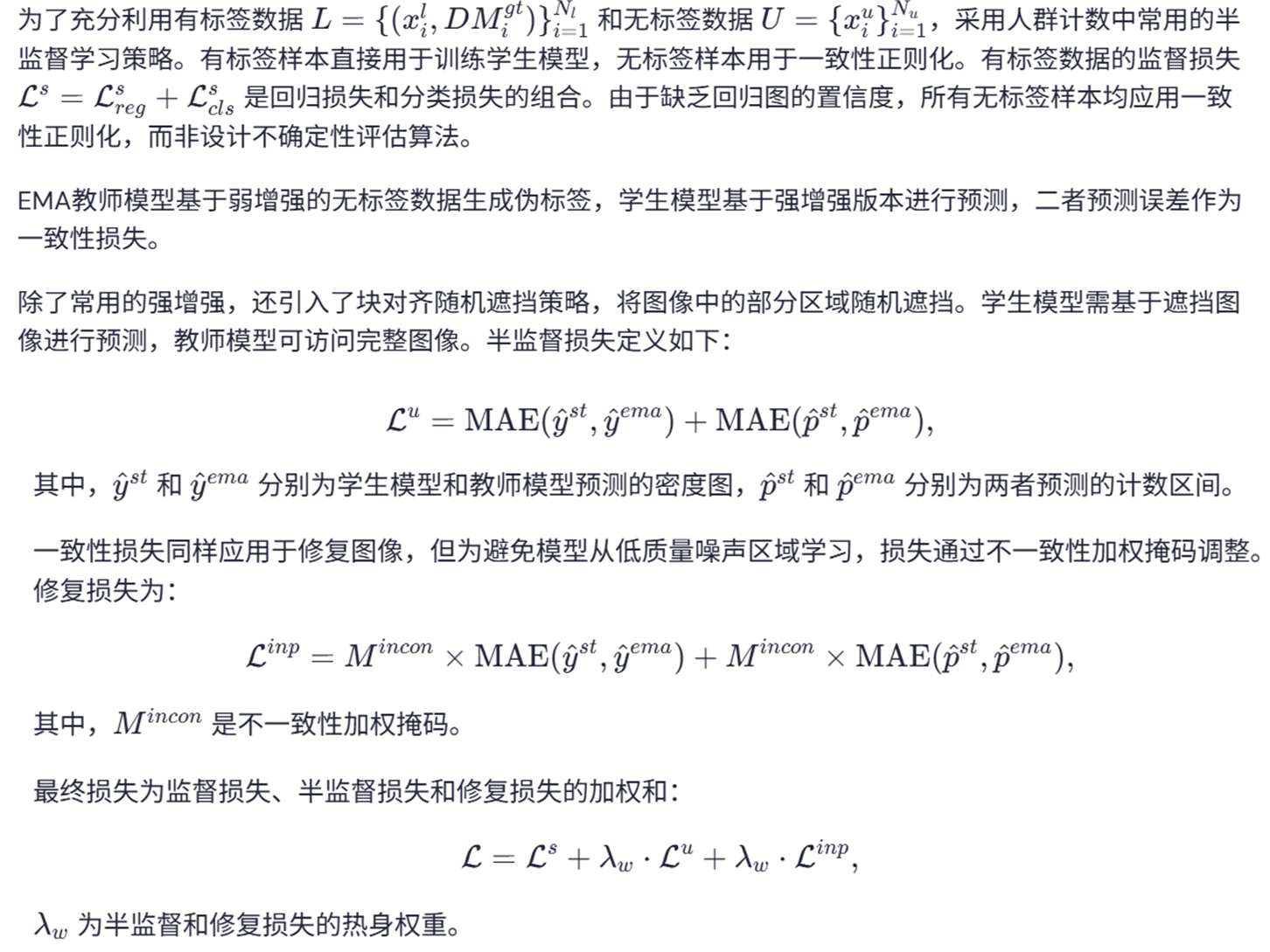 半监督人群计数技术对于降低高密度场景下的标注成本至关重要。尽管已有若干基于伪标签的方法被提出,但如何高效精准地利用未标注数据仍具挑战性。