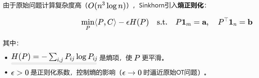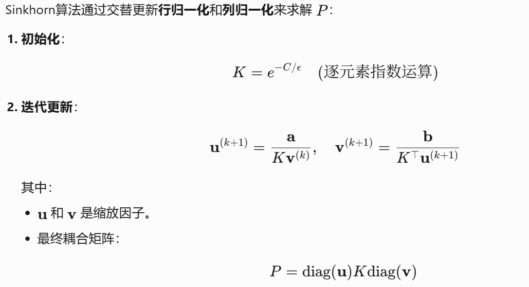 关于更多sinkhorn迭代算法的细节,请看:https://blog.youkuaiyun.com/weixin_44012667/article/details/146387606