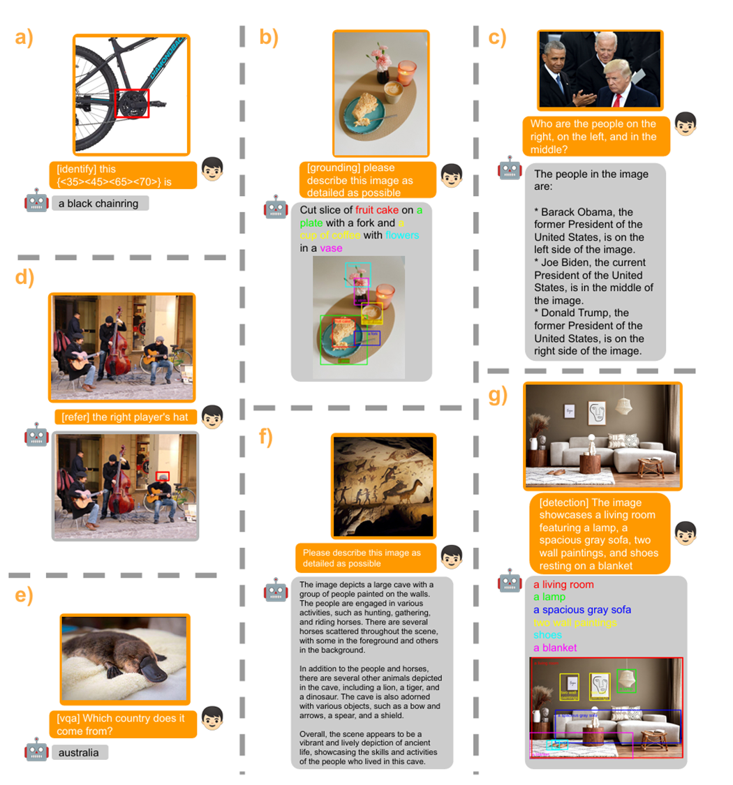f) detailed image description(输入图片 + 文本,详细的输出图像描述,不用标注目标位置);