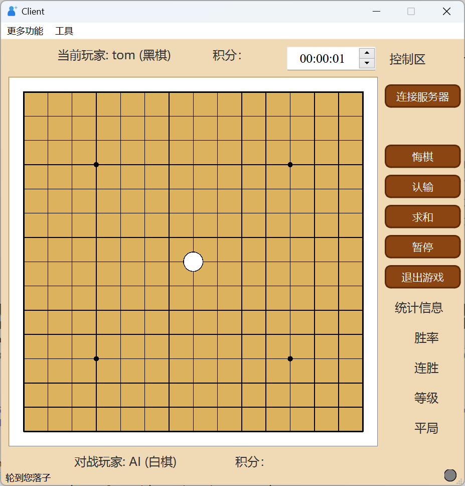 这是一个功能完整的五子棋对战平台,支持本地人机对战和网络人人对战。项目采用模块化设计,包含棋盘管理、AI决策、网络通信、音效系统等核心模块。玩家可以选择与智能AI对战或通过TCP/IP协议与远程玩家实时对战,系统提供实时聊天、胜负判定、战绩统计等功能。界面包含游戏模式选择、用户登录、在线玩家列表等交互对话框,支持音效反馈和状态指示灯显示。采用C++/Qt 6.6.0开发,具有跨平台能力。