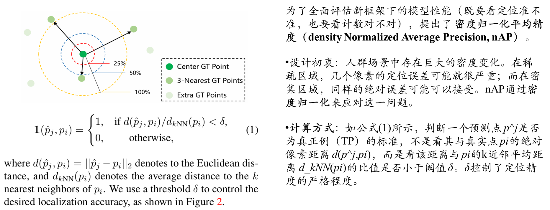 2.提出了一种称为密度归一化平均精度(density Normalized Average Precision)的新评估指标,作为新框架下兼顾定位与计数评估的综合指标。