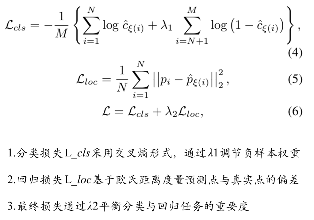 •等置信度场景:当多个候选点具备相同置信度时,优先匹配空间距离更接近真实标注点 pi的样本作为正样本,通过训练激励其达成更高定位精度;其余候选点则作为负样本监督学习以降低其置信度,减少在后续训练迭代中的错误匹配概率。