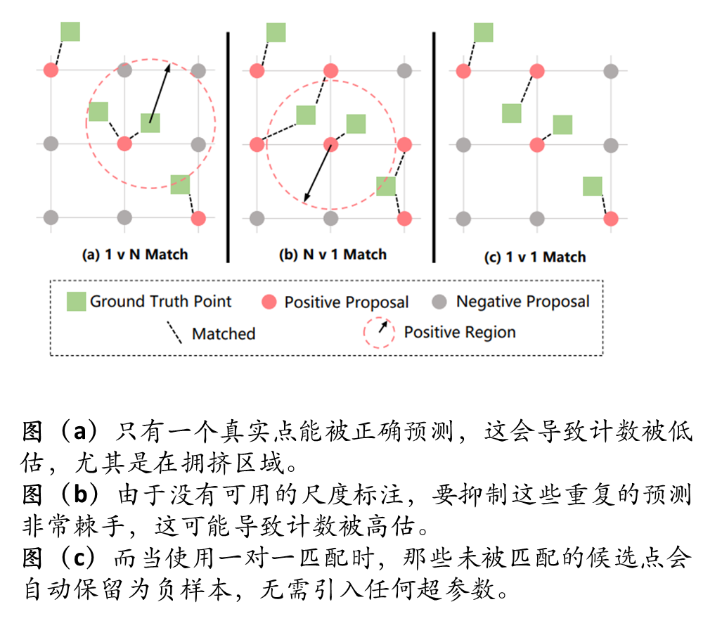检测框方法:一些方法尝试将计数视为头部检测问题。但这类方法需要启发式地生成伪边界框作为学习目标(因为标注通常只有中心点),这既不准确,又会使非极大值抑制(NMS)等后处理步骤在密集场景中失效。