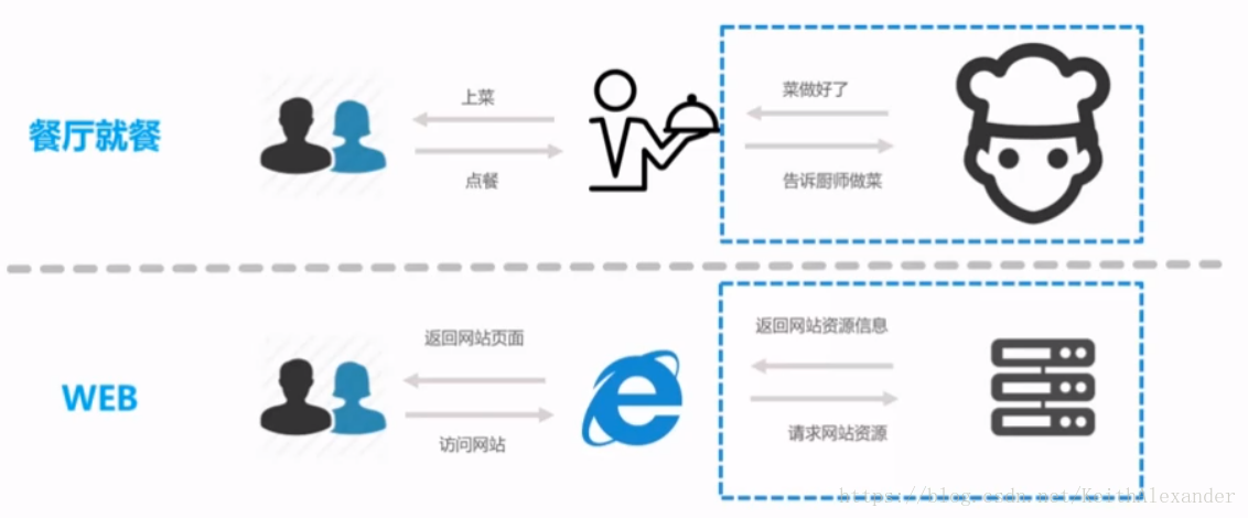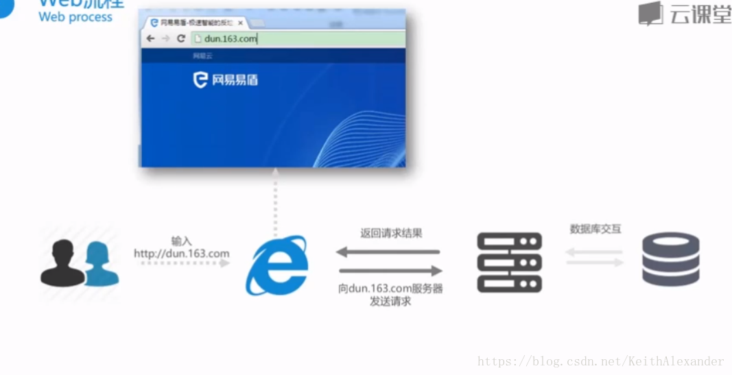 ——》浏览器用IP地址访问服务器——》服务器返回网页内容
