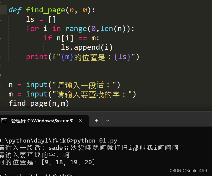m = input("请输入要查找的字:")