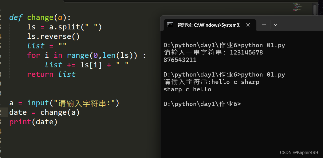 出,“hello c sharp”→“sharp c hello”。