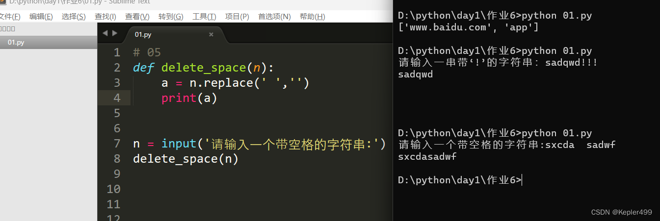 n = input('请输入一个带空格的字符串:')