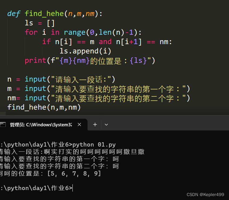 nm= input("清输入要查找的字符串的第二个字:")