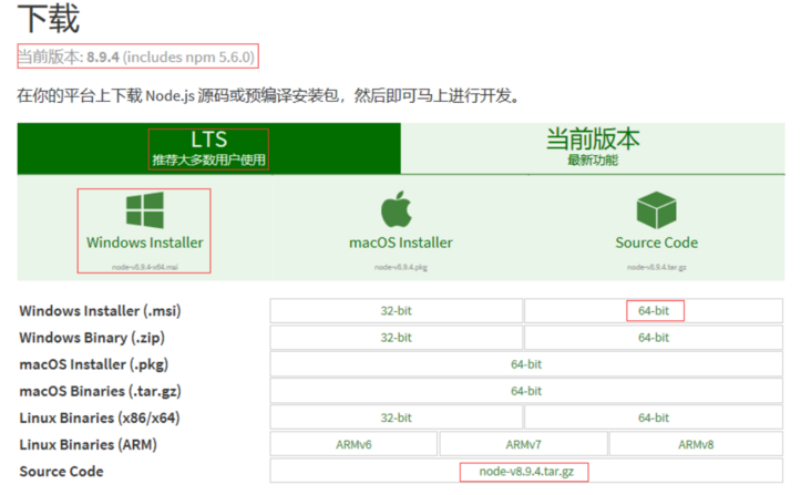 2、Node.js:node-v8.9.4-x64.msi(64位)