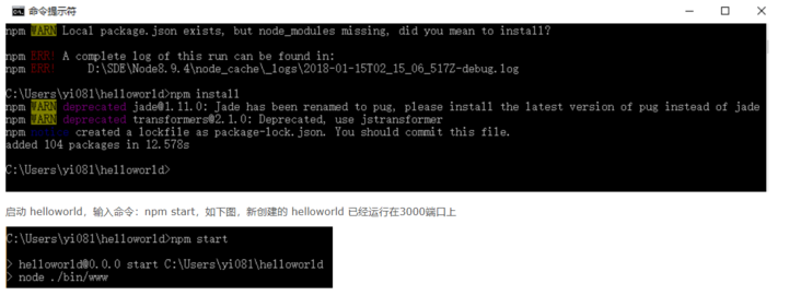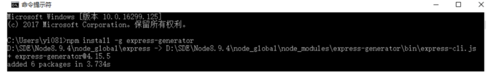 配置完后,安装个module测试下,我们就安装最常用的express模块,打开cmd窗口,输入如下命令进行模块的全局安装: