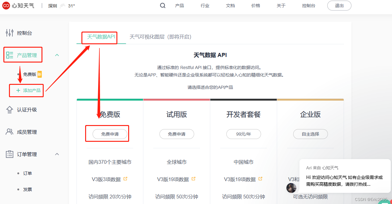获取心知天气API方法: