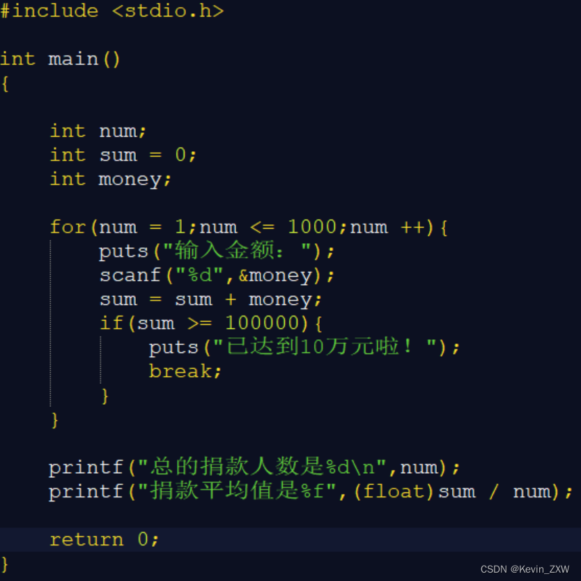 本文介绍了C语言中的条件语句,如if...else和switch...case,以及不同类型的循环结构,包括while、do...while和for循环。文中还涉及了逻辑运算符、循环控制(如break和continue)、死循环的情况以及编程练习,如数组操作和数学问题的应用。
