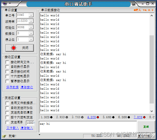 串口配置:
