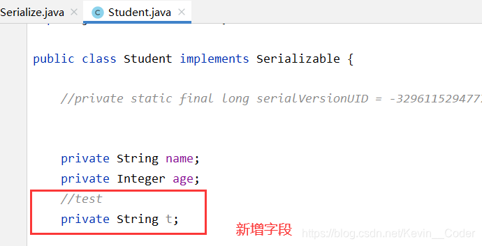 2. 然后改变Student类结构( 给Student类加一个属性t )