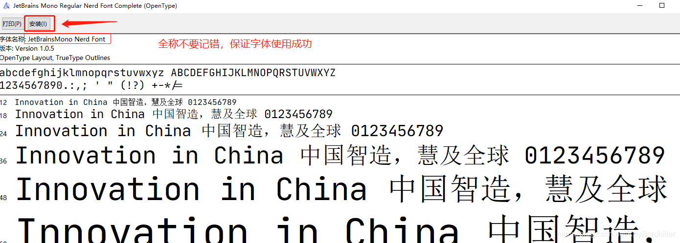 下载后直接在电脑中双击之后就可以使用了,如图:先记住这个字体的全称,一个字符都不能错。