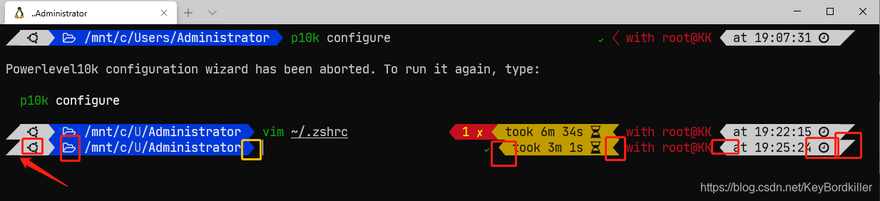 若显示为这中状态则证明powerlevel10k已经安装成功