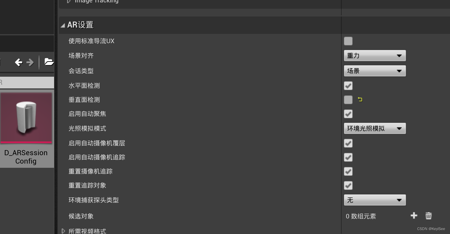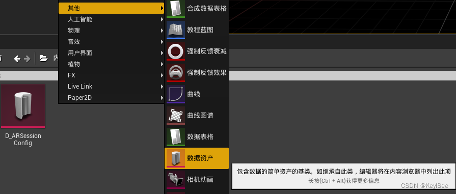 创建方式:在内容浏览器内容 -> 如图中所示 ->点击后选择ARSessionConfig