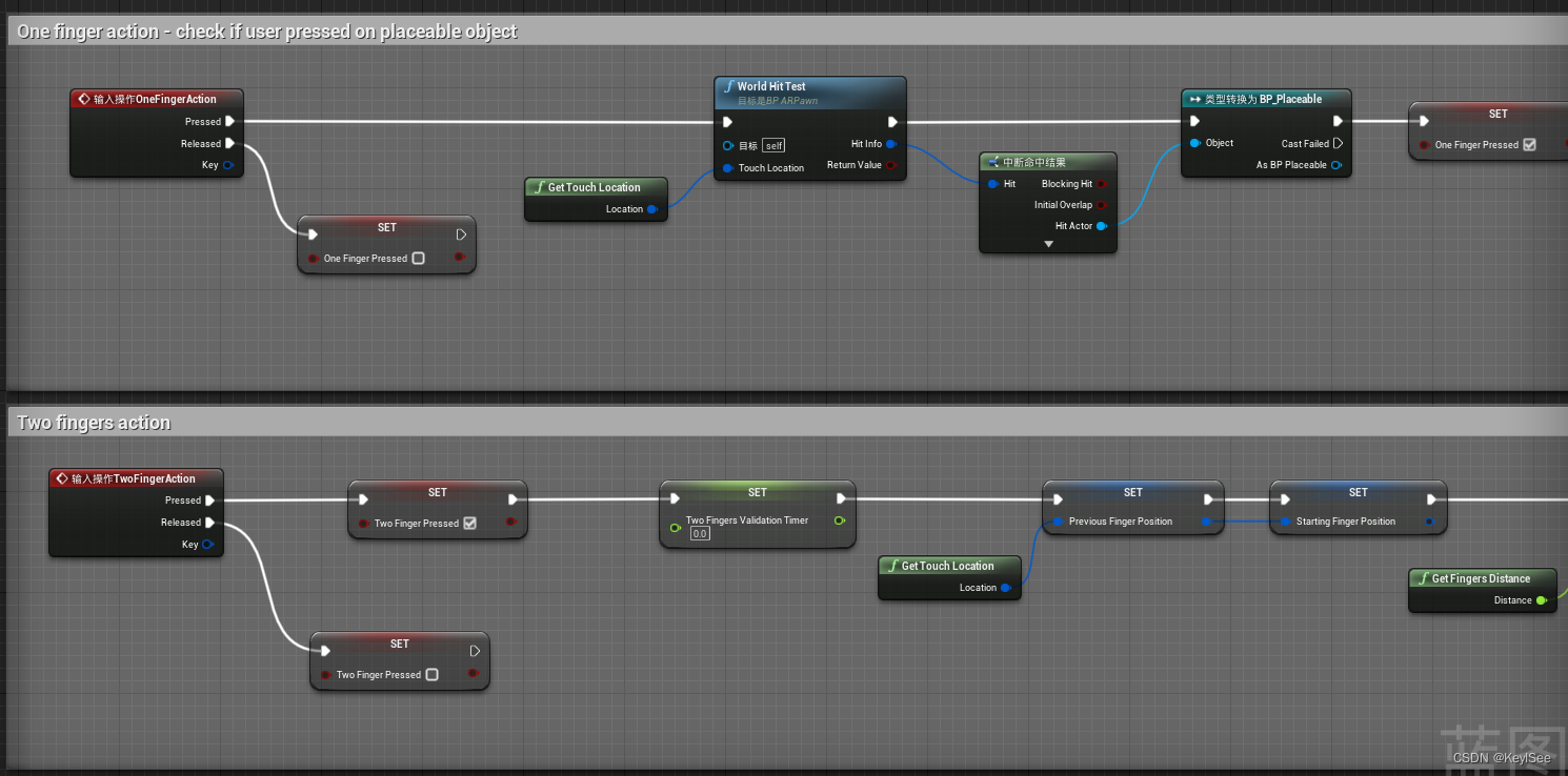 这部分会记录一些输入信息给下一部分,OneFinger是判断是否选择对象,TwoFinger会保存当前手指位置为Pervious的位置。