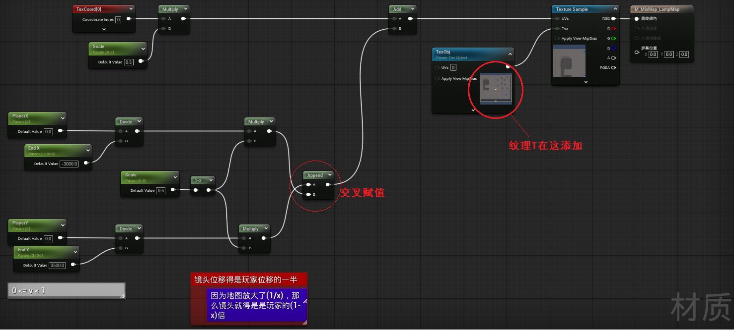 注意:屏幕的X轴是虚幻中的Y轴;屏幕的Y轴是虚幻的-X轴。所以材质里要交叉赋值。