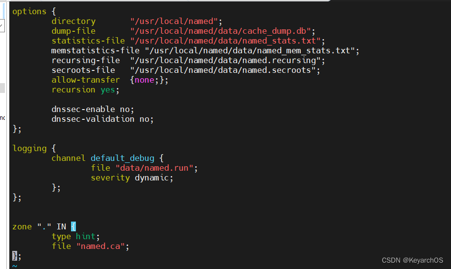 dig -t NS . @a.root-servers.net > /usr/local/named/named.ca
