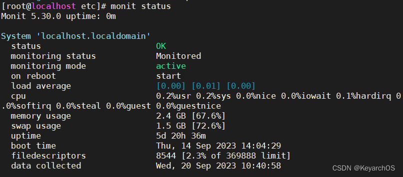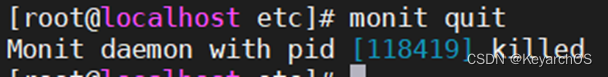 再次查看monit运行状态,可以看到monit已经停止运行: