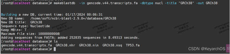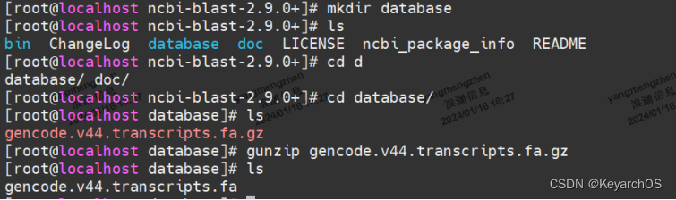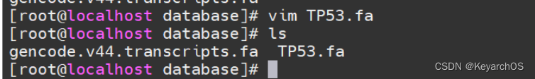 linux 解压的文件夹下创建database文件夹,将下载的gencode.v44.transcripts.fa.gz文件放在database文件夹下,并使用gunzip gencode.v44.transcripts.fa.gz解压压缩包