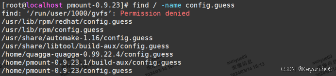 将系统中的config.guess文件覆盖安装目录的该文件,cp /usr/share/automake-1.16/config.guess /home/pmount-0.9.23/