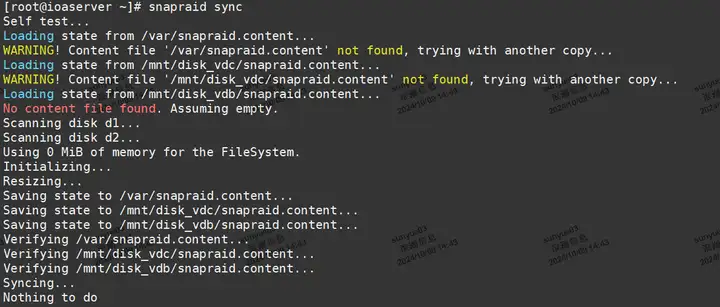 执行snapraid sync根据数据盘生成校验盘,执行成功